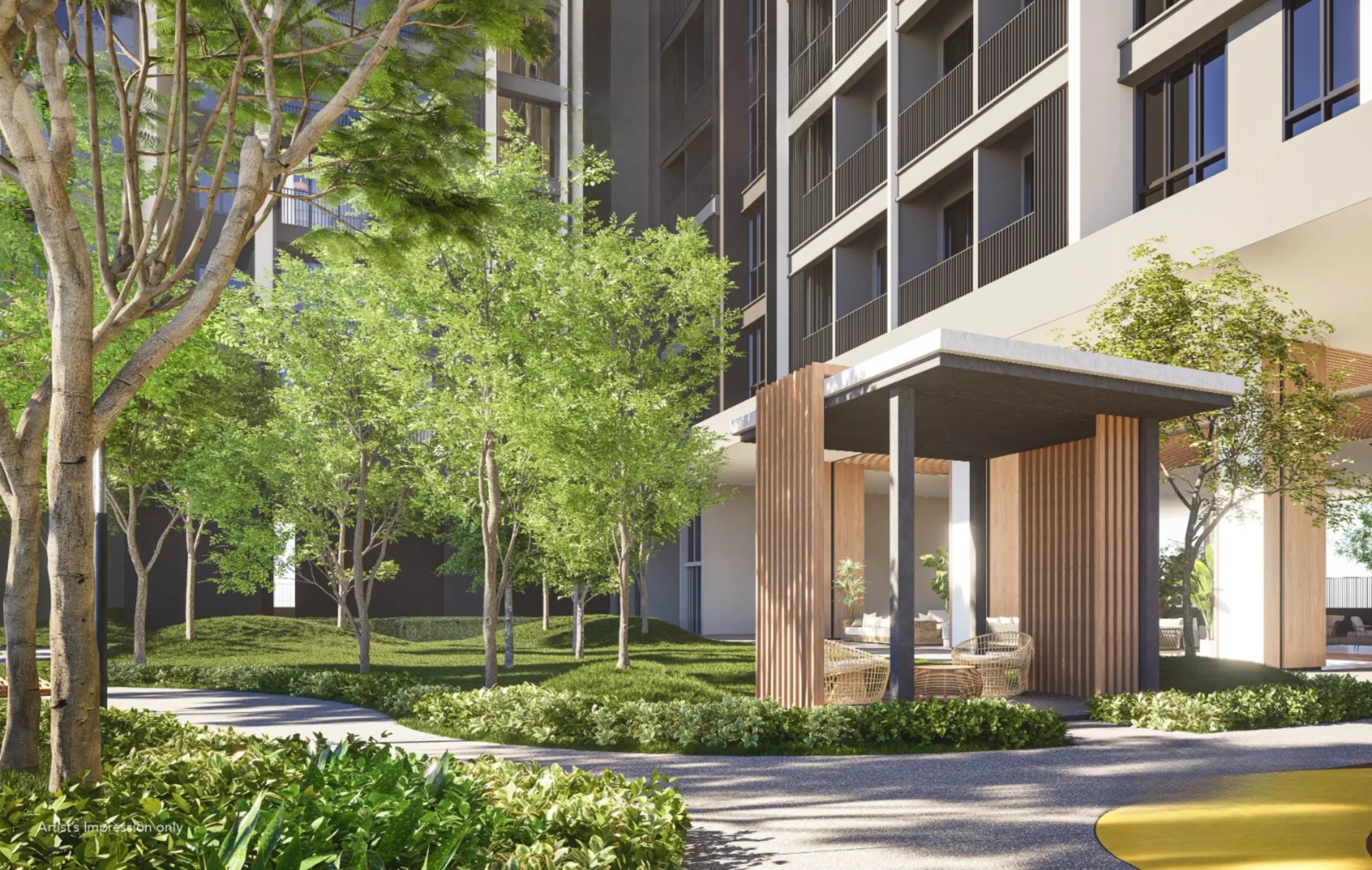 Grand drop-off with luxury detailing set the tone for high-end living from the moment you arrive.